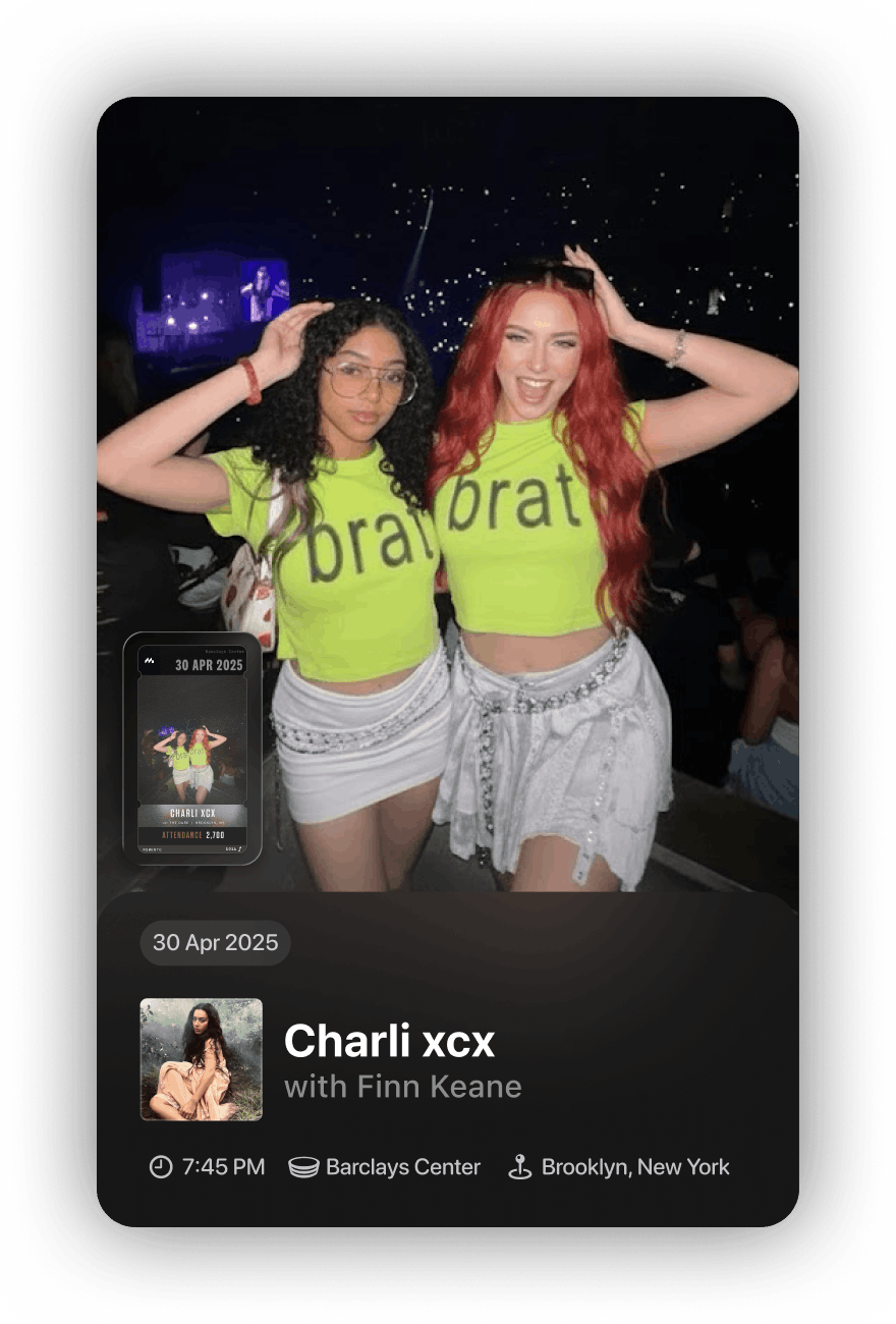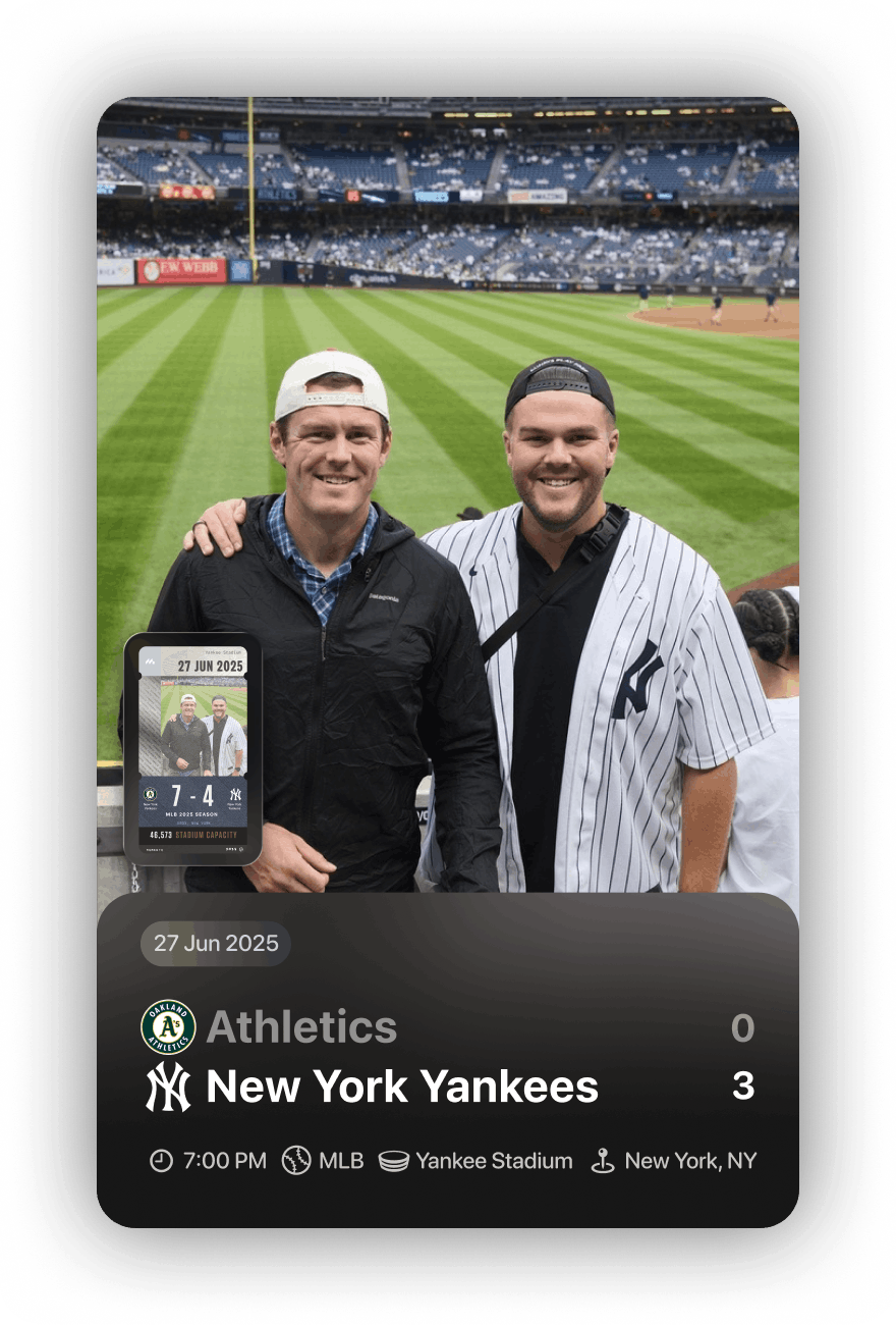 Momento works by combining your photos, events, and locations into a structured, private memory timeline. Everything is organized automatically, giving you a clear record of concerts, games, trips, and everyday moments. This makes memories easier to save, find, and relive — without disrupting the experience of living them.
